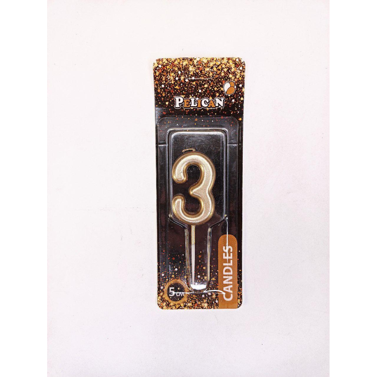 Свічка для торта Pelican “3“ ЗОЛОТО 5 см 865013 KNZ