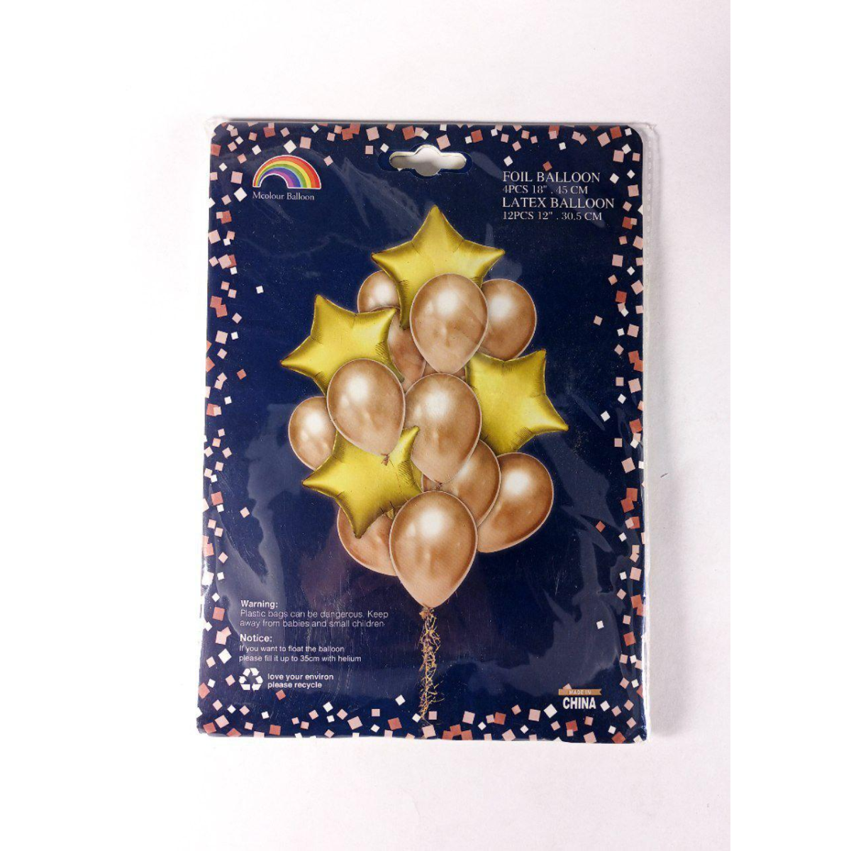 Набір із 16 кульок — 4 фольгованих “18“ 45 см і 12 латексних “12“ 30,5 см, ЗОЛОТІ K-521gold KNZ