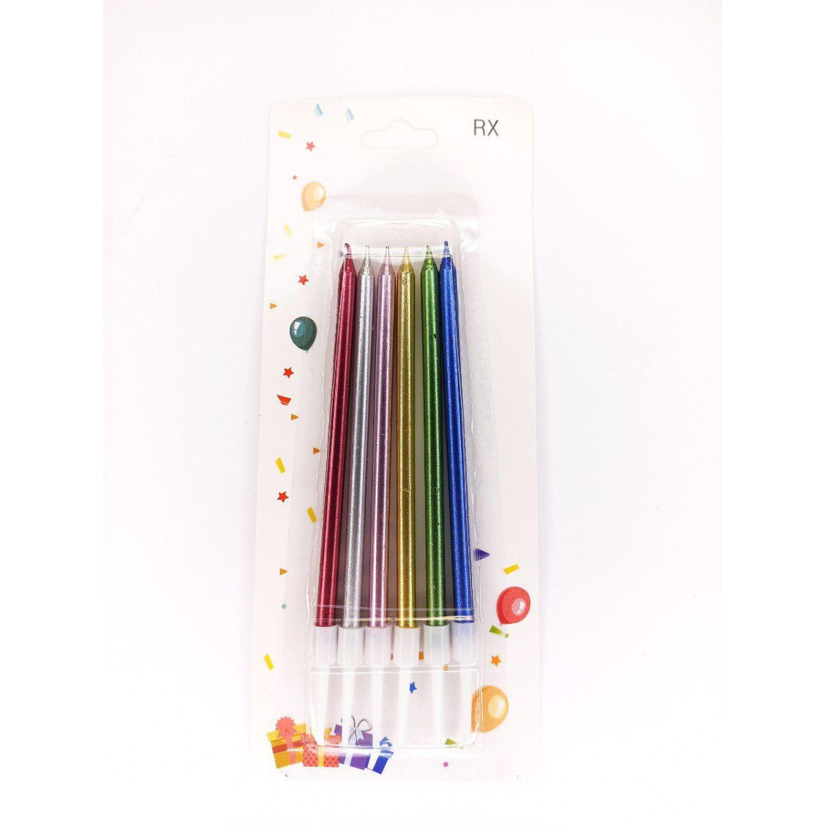 Набір свічок для торта, 6 шт, металізований мікс, 12 см KNZ