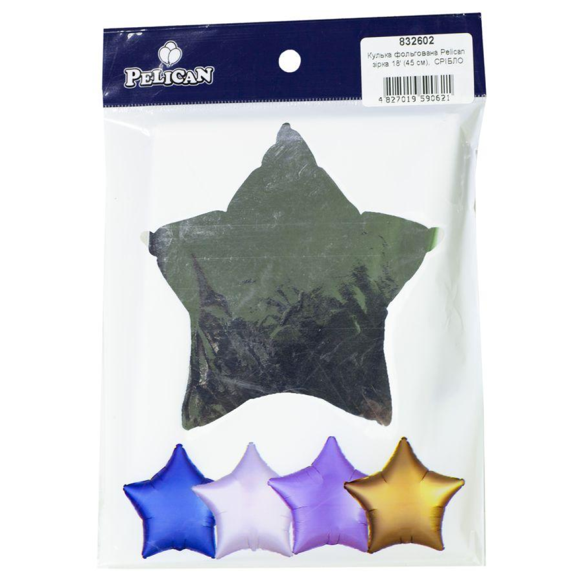 Кулька фольгована PELICAN зірка 18“ (45 см) Срібло (5ш KNZ