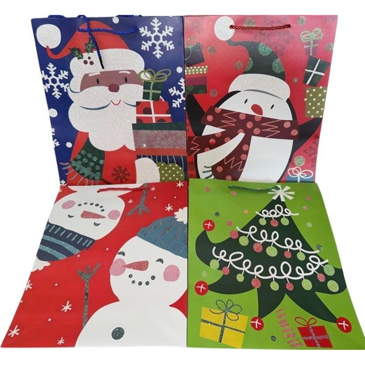Новорічний подарунковий пакет із глітером, 30х41х12 см, 4 дизайни, EF-2331XL-1 KNZ