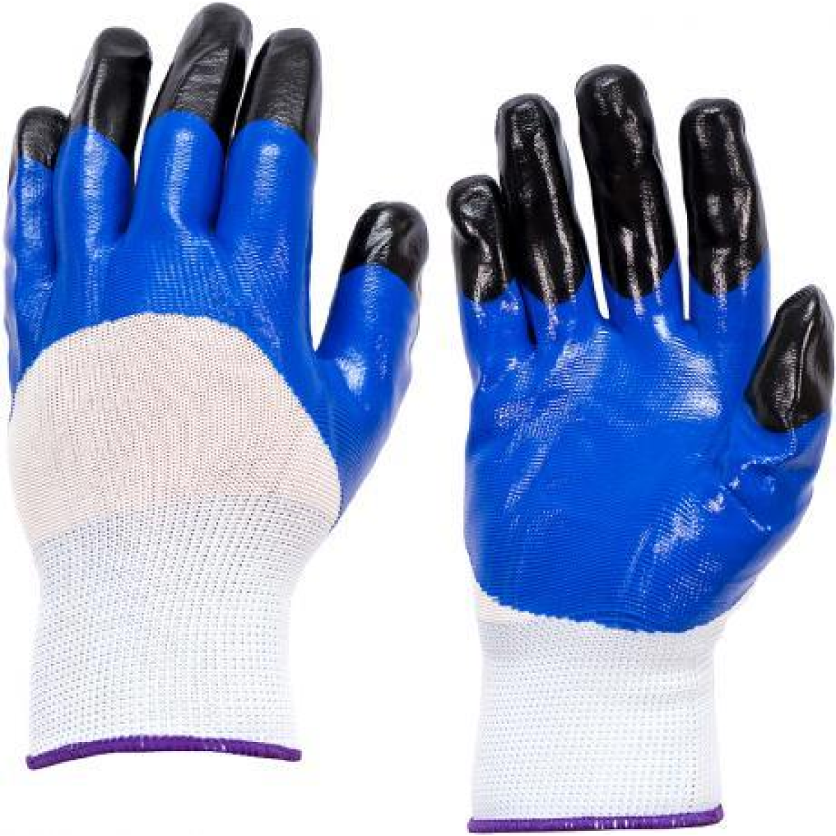 Перчатки робочі 909-1 Сині із чорними пальцями гумові KNZ
