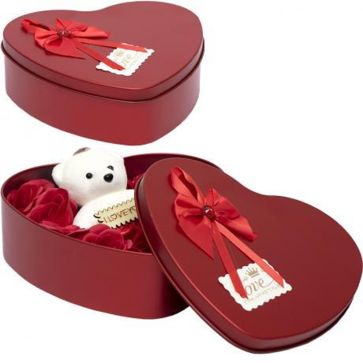 Набір подарунковий “Ведмедик з трояндочками 9шт“ в коробочці сердечко 6069 KNZ