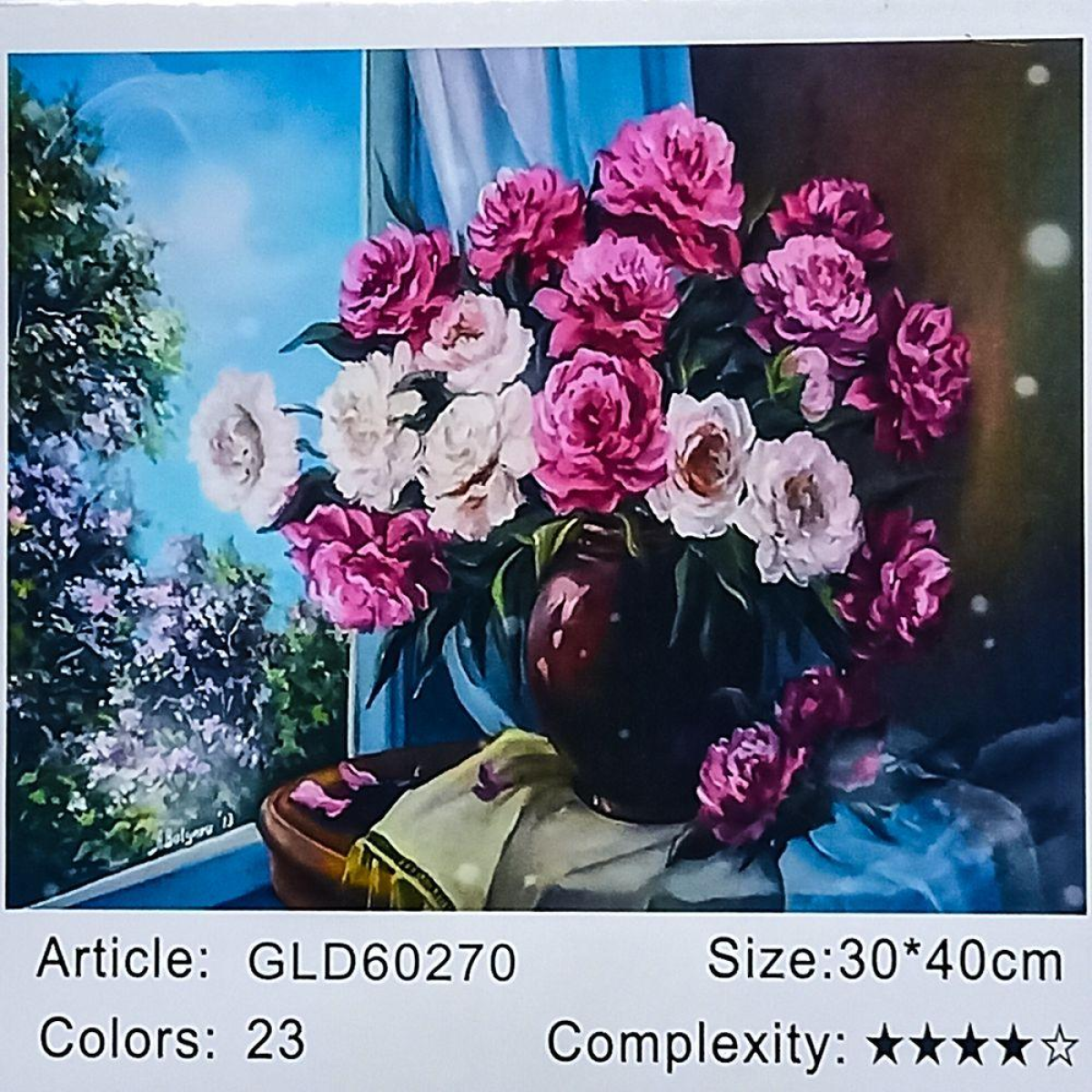 Алмазна мозаїка 30 х 40см “Квіти на підвіконні“ рулон в PVC (без підрамника) 60270_O GLD KNZ