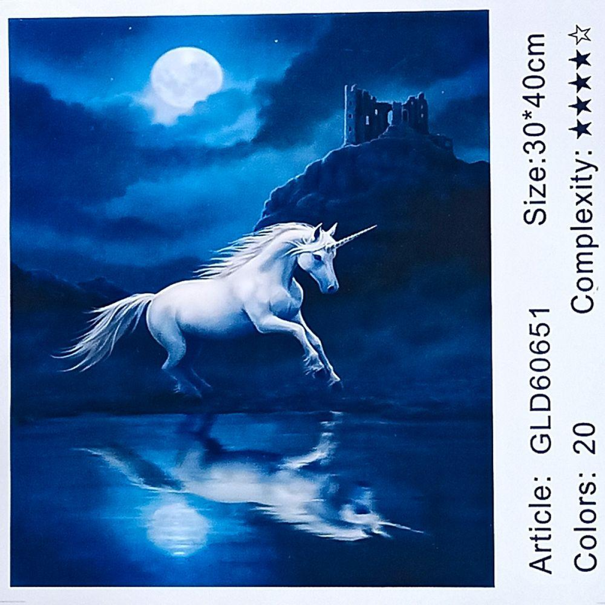 Алмазна мозаїка за номерами 30 х 40см “Єдиноріг“ (полотно на рамі) 60651_B GLD KNZ