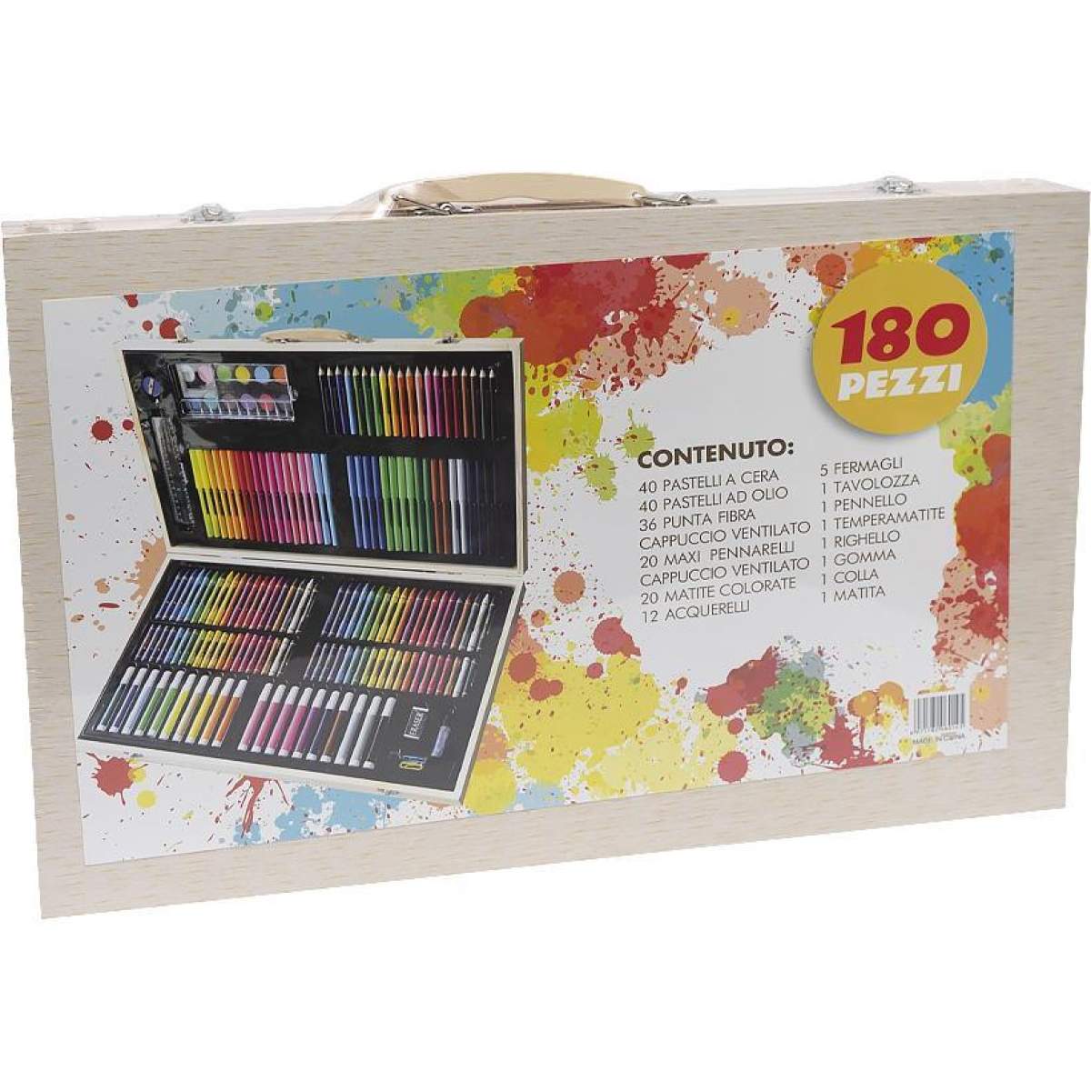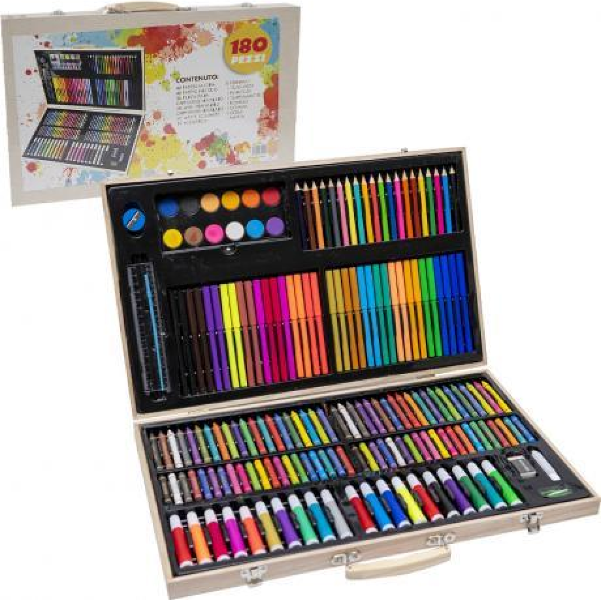 Художній набір для малювання в дерев“яній валізі 180 предметів, Набір комплект юного художника KNZ