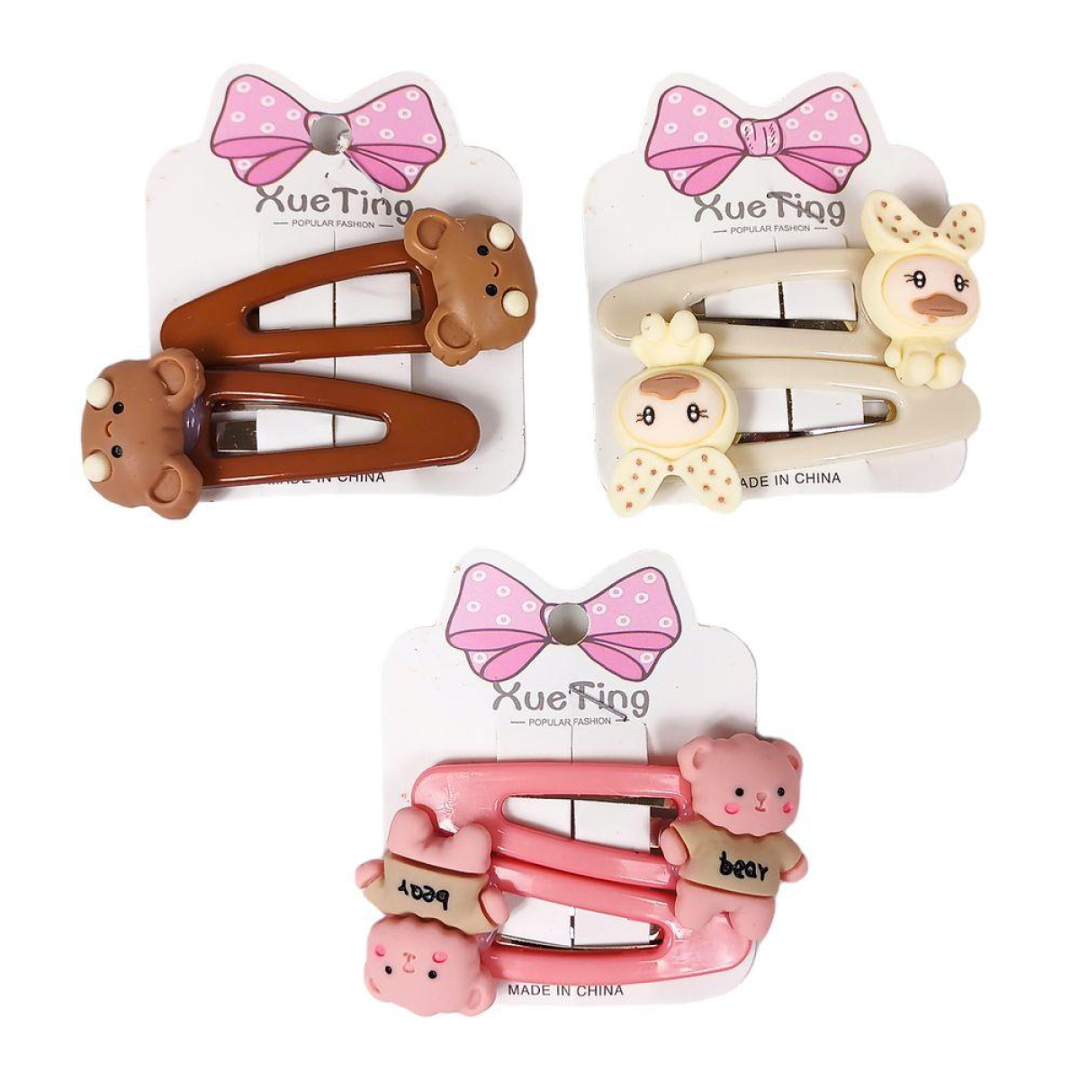 Шпилька тик-так для волосся “Ведмедики та качечки“ 20шт на блістері HC-009 KNZ