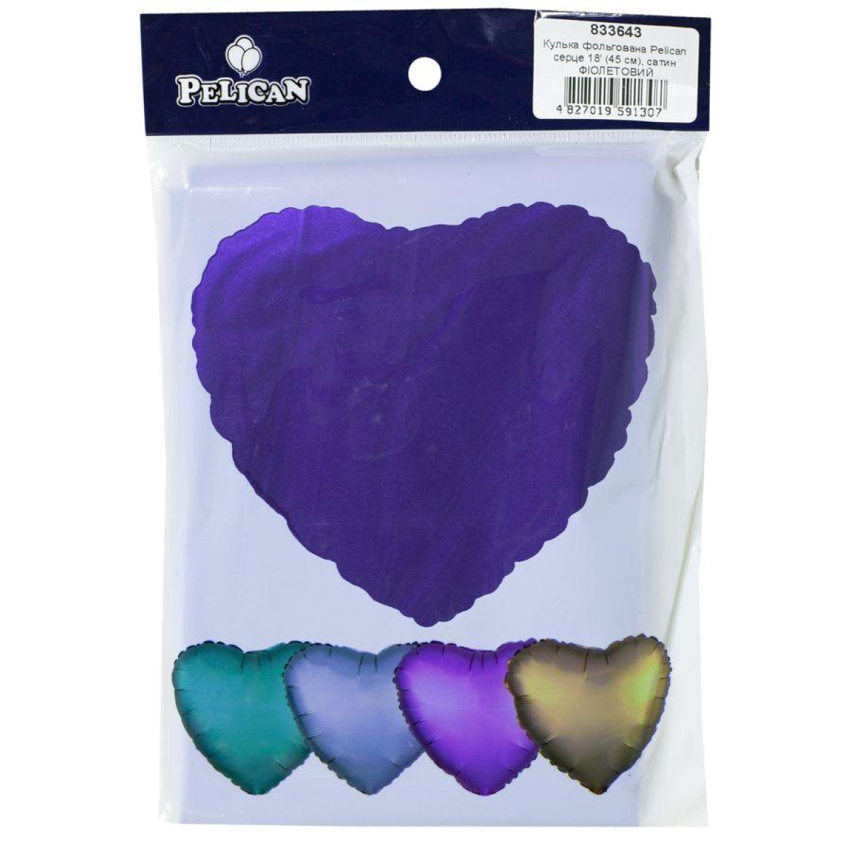 Кулька фольгована PELICAN серце 18“ (45см) сатин фіолетовий 5шт 833643 KNZ