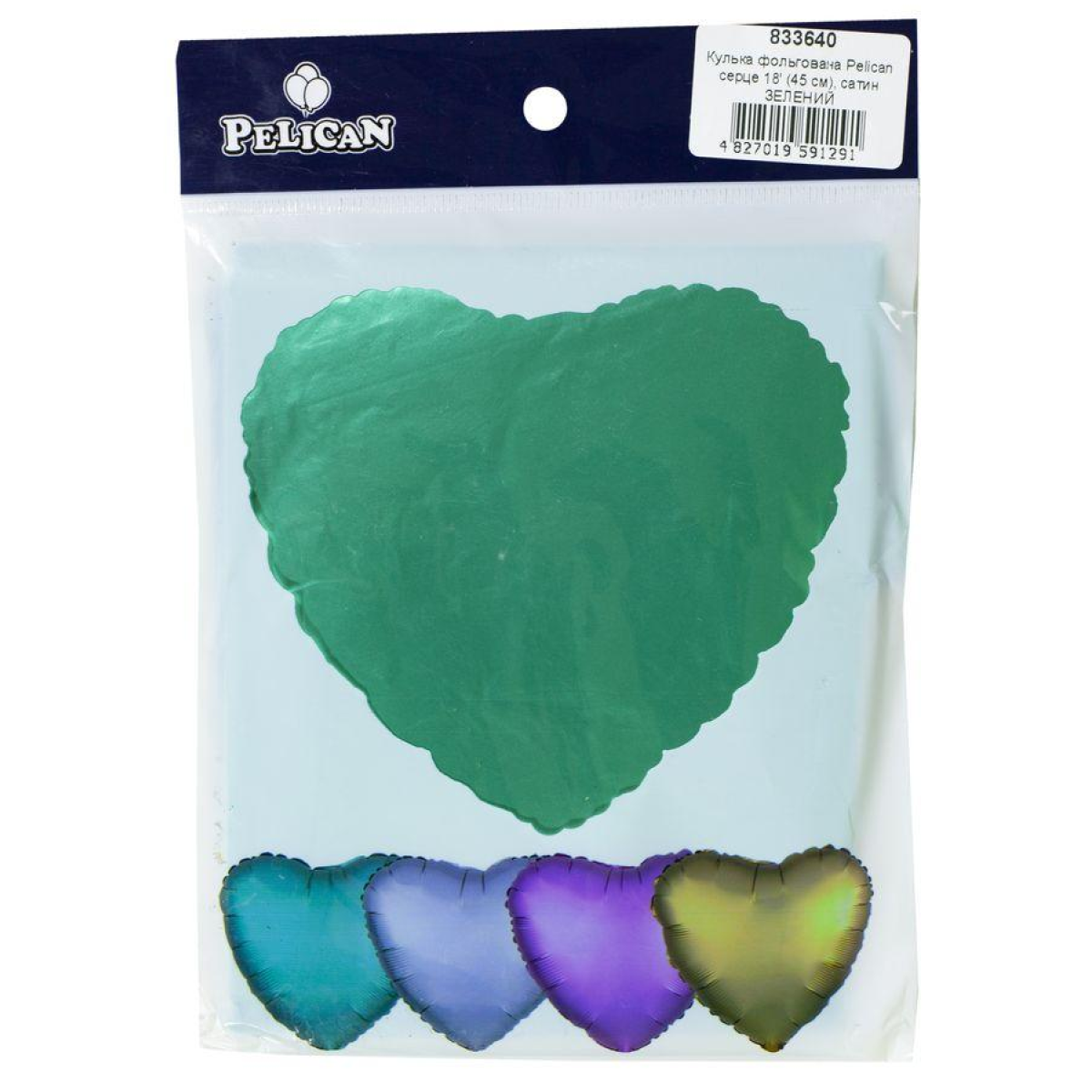 Кулька фольгована PELICAN серце 18“ (45см) сатин зелений (5ш 833640 KNZ