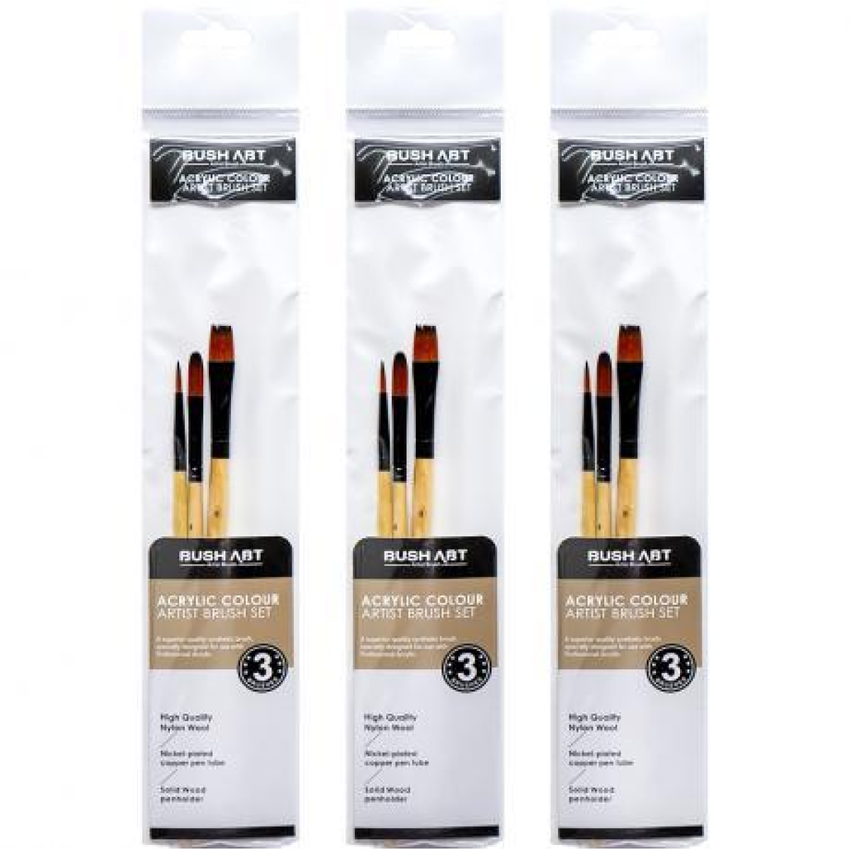 Набір пензлів художніх 3шт для акрилових фарб AS330-2 KNZ