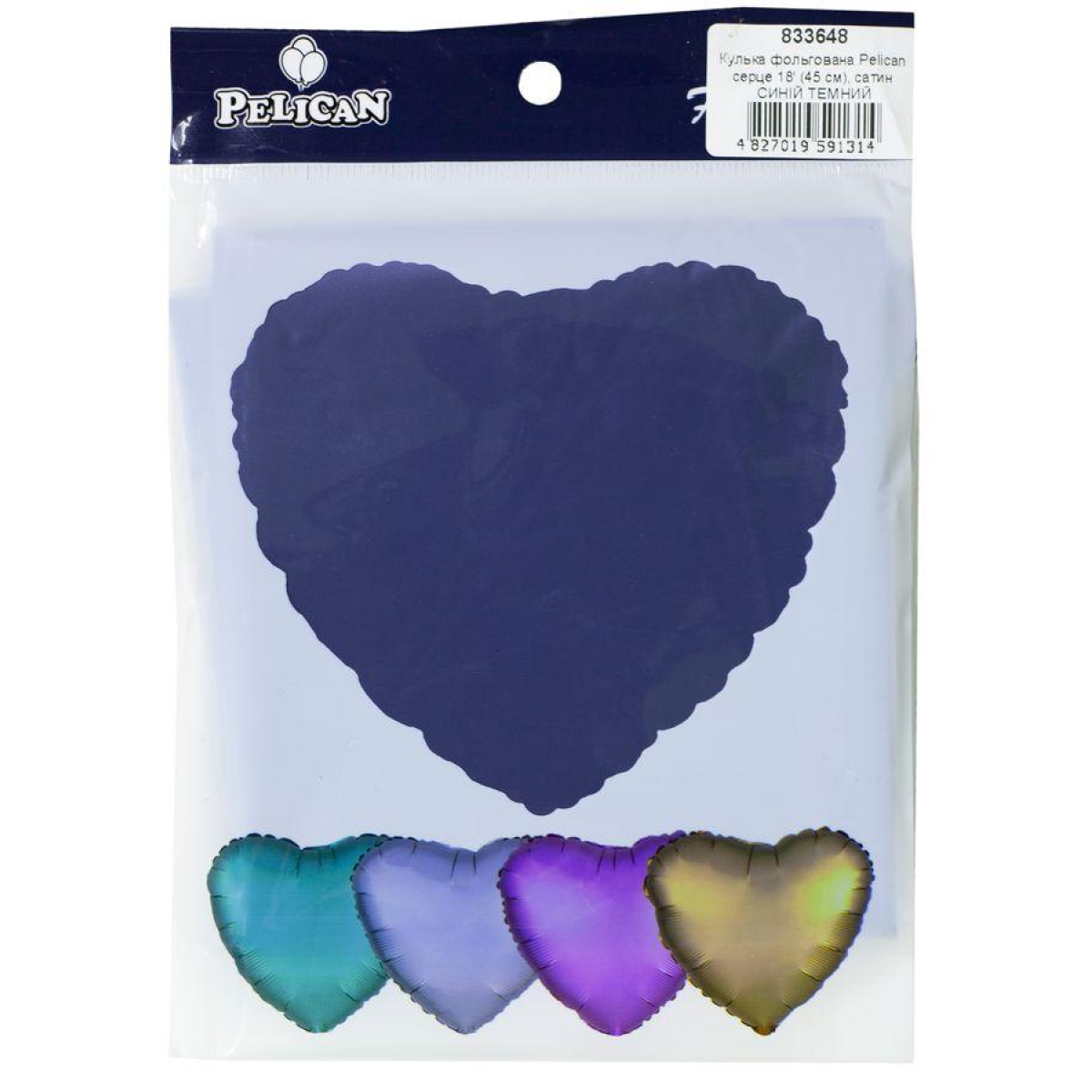 Кулька фольгована PELICAN серце 18“ (45см) сатин синій тем (5шт) 833648 KNZ
