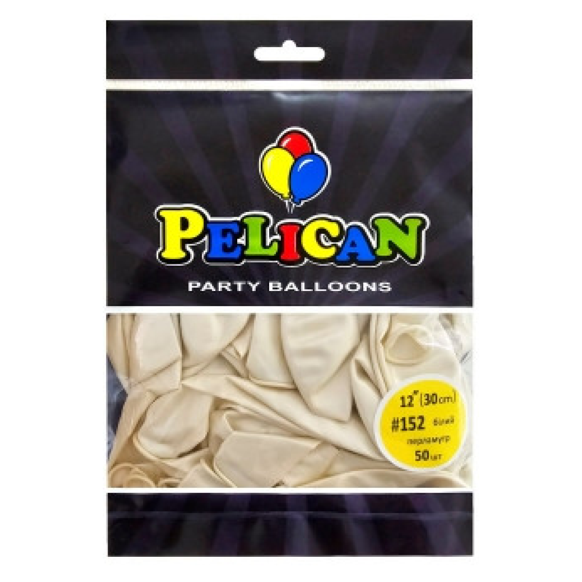 Кульки латексні 12“ (30см) перламутр білий Pelican 50шт (812152) KNZ