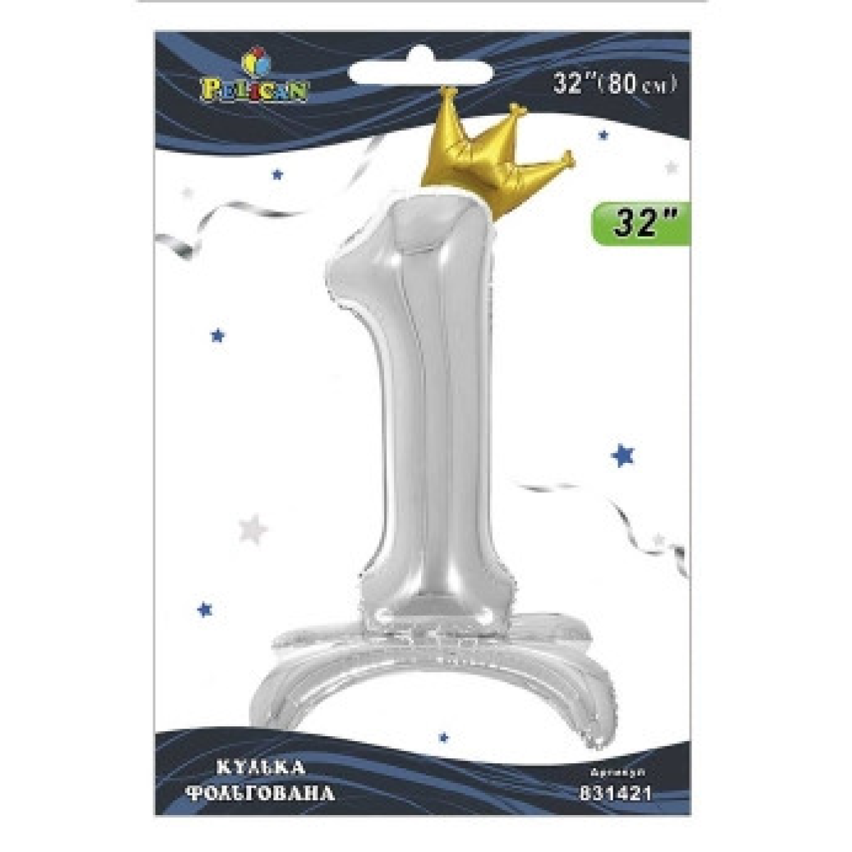 Кулька фольгована цифра з короною на підставці “1“ срібло 32“ (80см) Pelican Срібний Pelican (831421) KNZ