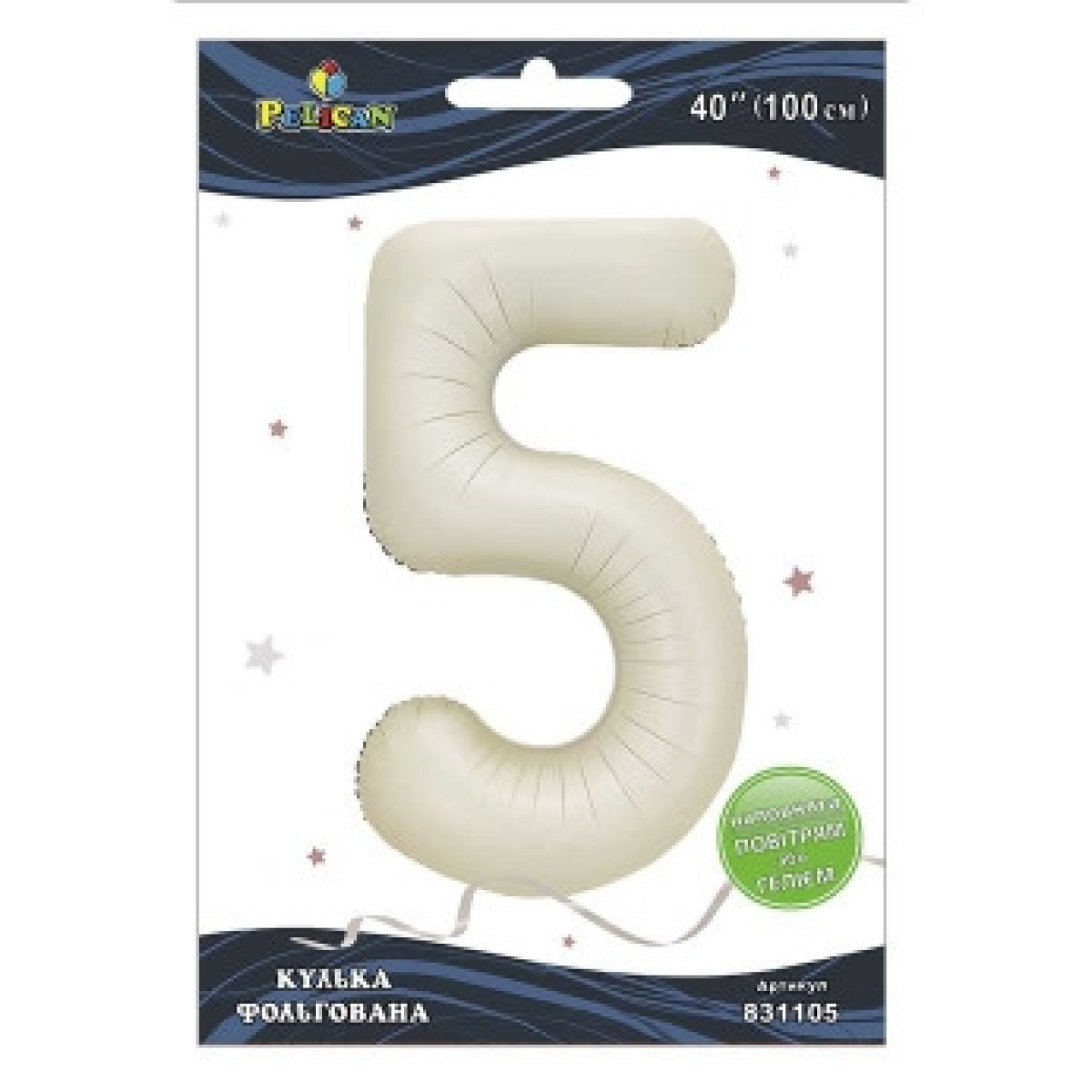 Кулька фольгована цифра “5“ молочна 40“(100см) Pelican Бежевий Pelican (831105) KNZ