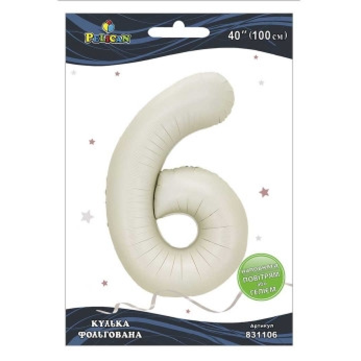 Кулька фольгована цифра “6“ молочна 40“(100см) Pelican Бежевий Pelican (831106) KNZ