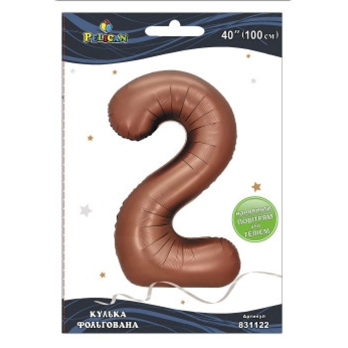 Кулька фольгована цифра “2“ коричнева 40“ (100см) Pelican Коричневий Pelican (831122) KNZ