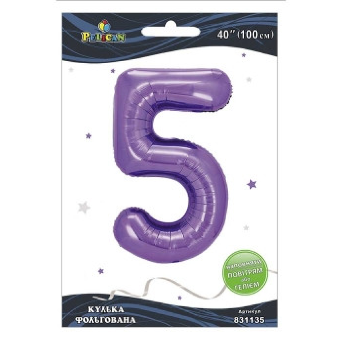 Кулька фольгована цифра “5“ лавандова 40“ (100см) Pelican Фіолетовий Pelican (831135) KNZ