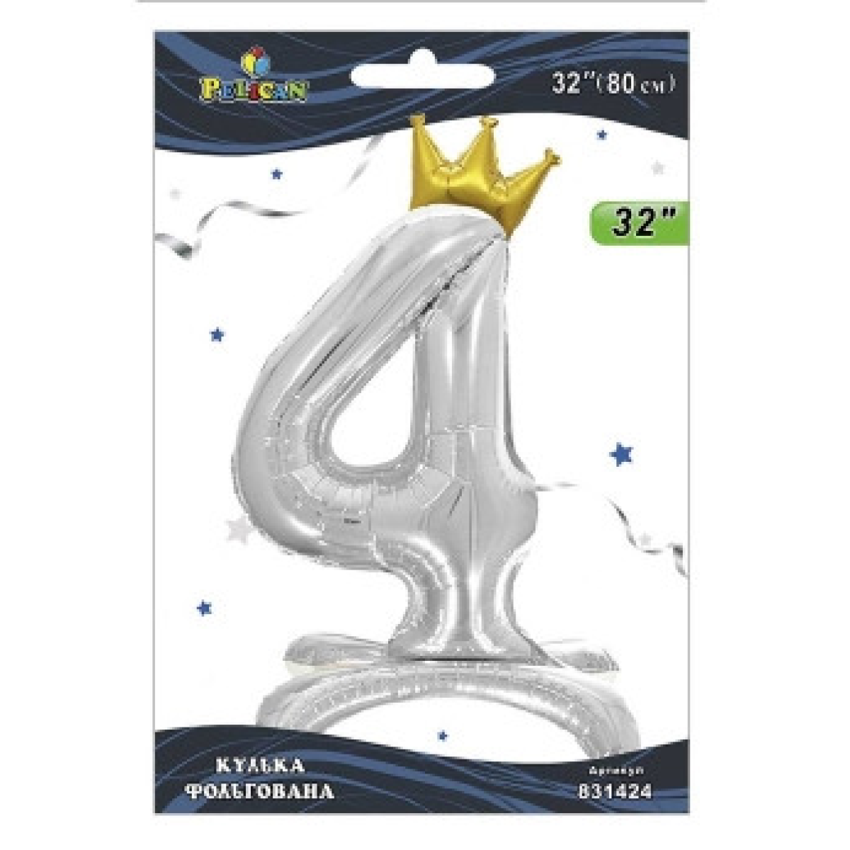 Кулька фольгована цифра з короною на підставці “4“ срібло 32“ (80см) Pelican Срібний Pelican (831424) KNZ