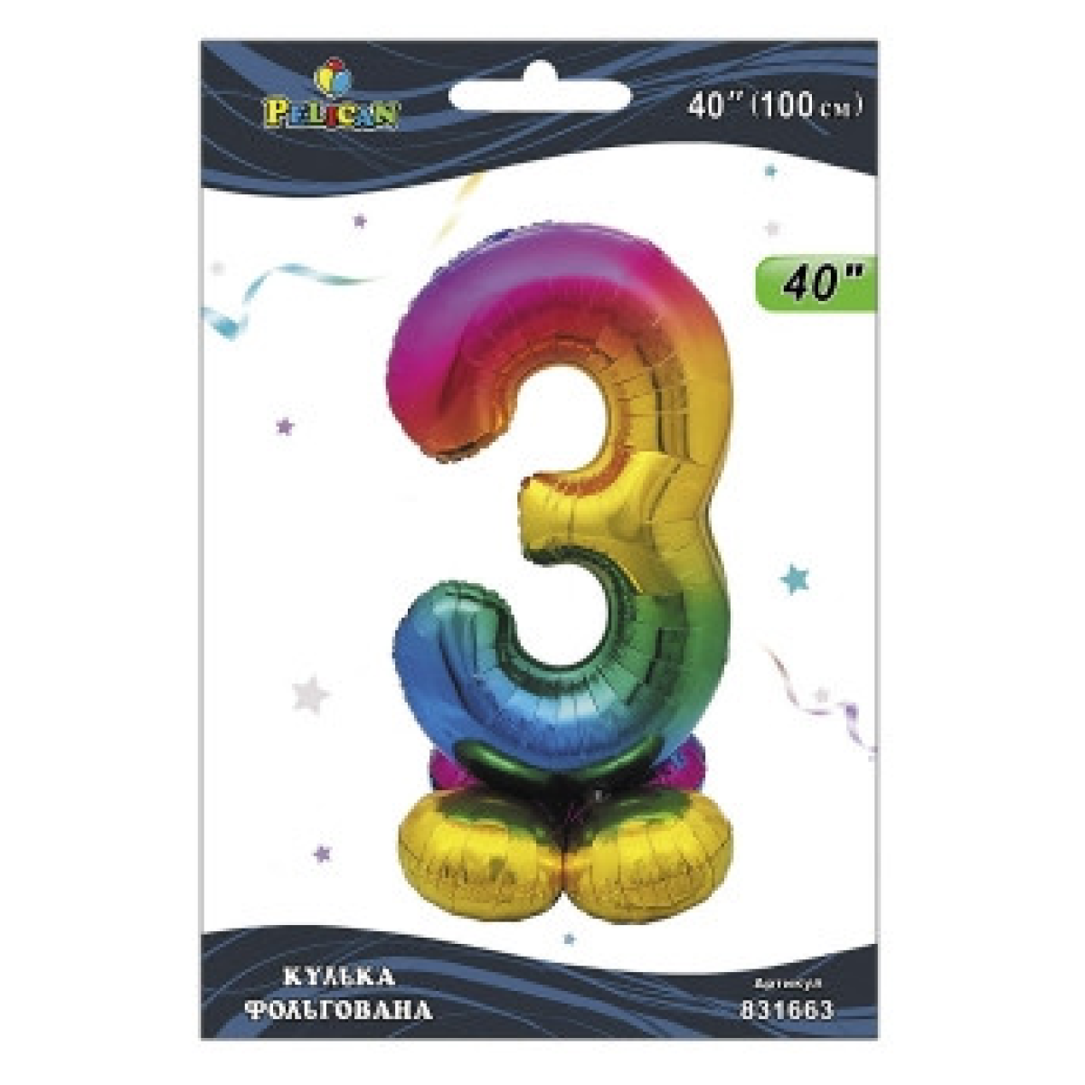 Кулька фольгована на підставці цифра “3“ градієнт 40“ (100см) Pelican Різнокольоровий Pelican (831663) KNZ