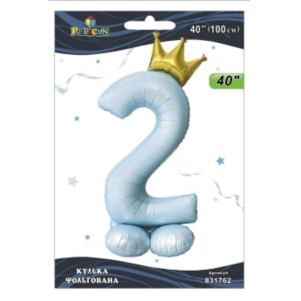 Кулька фольгована цифра з короною на підставці “2“ блакитна 40“ (100см) Pelican Блакитний Pelican (831762) KNZ