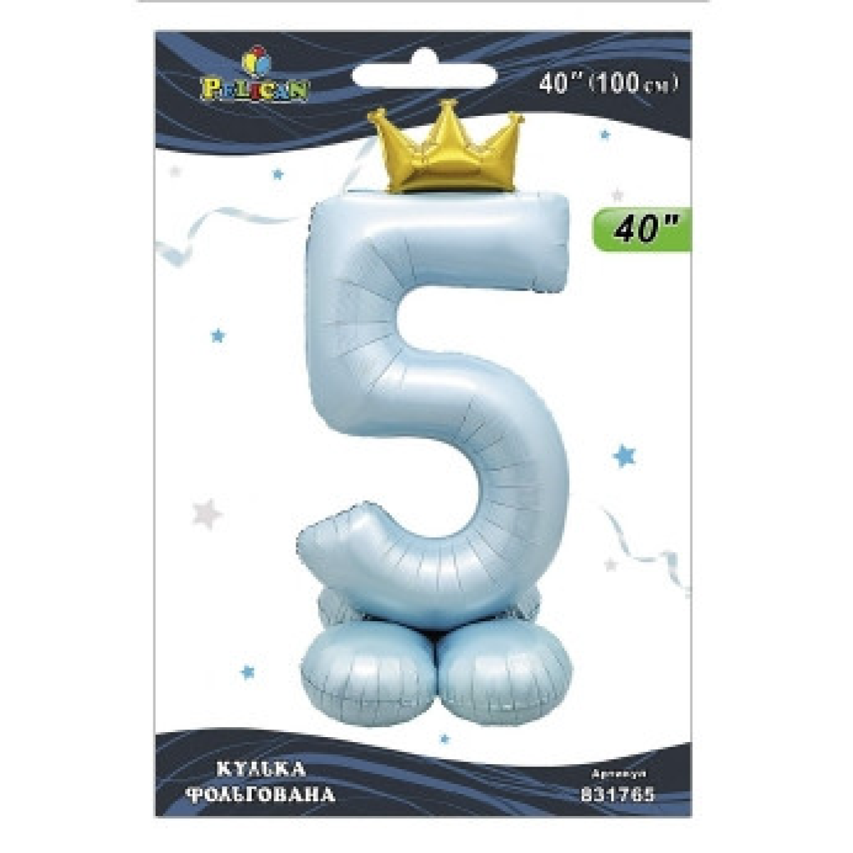 Кулька фольгована цифра з короною на підставці “5“ блакитна 40“ (100см) Pelican Блакитний Pelican (831765) KNZ