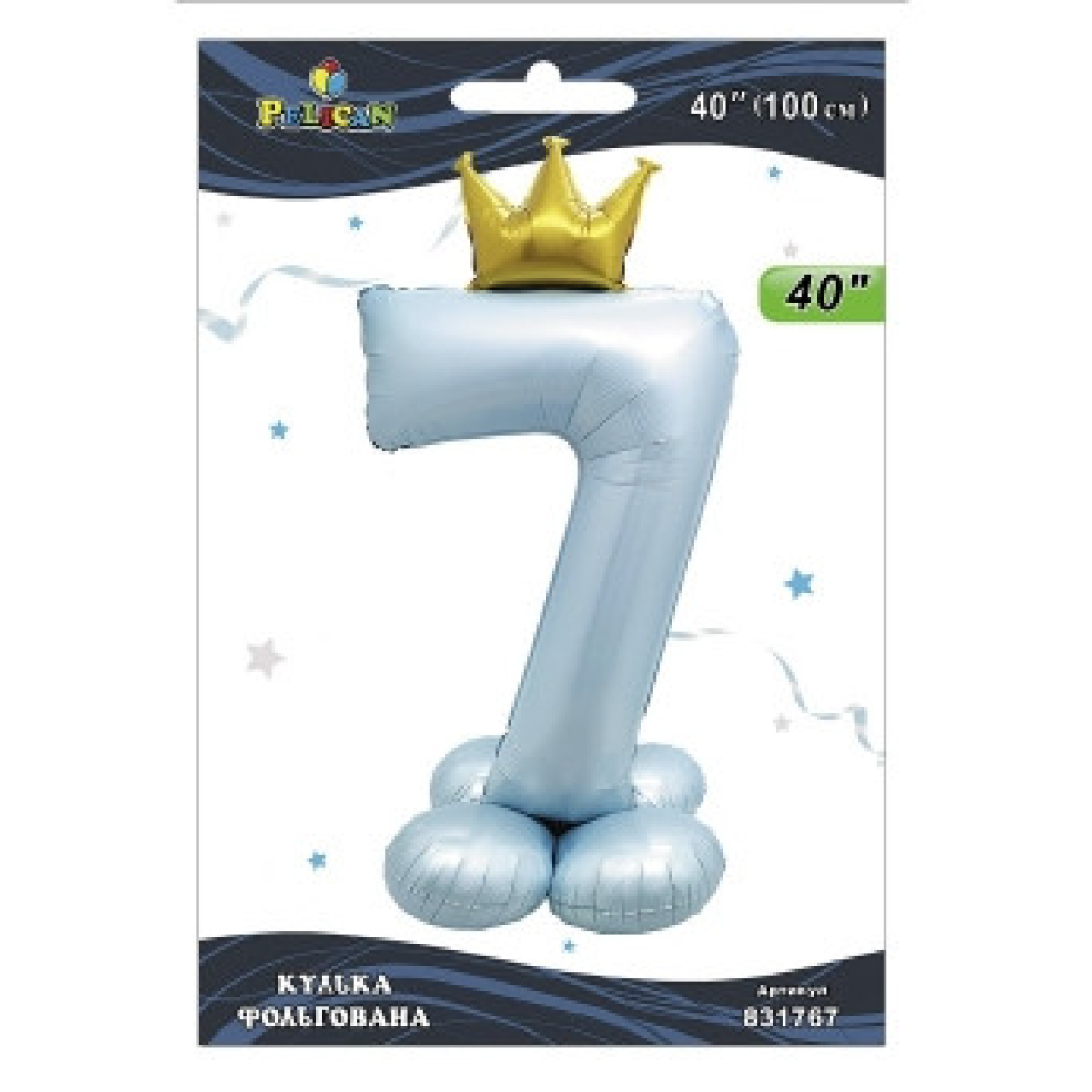 Кулька фольгована цифра з короною на підставці “7“ блакитна 40“ (100см) Pelican Блакитний Pelican (831767) KNZ