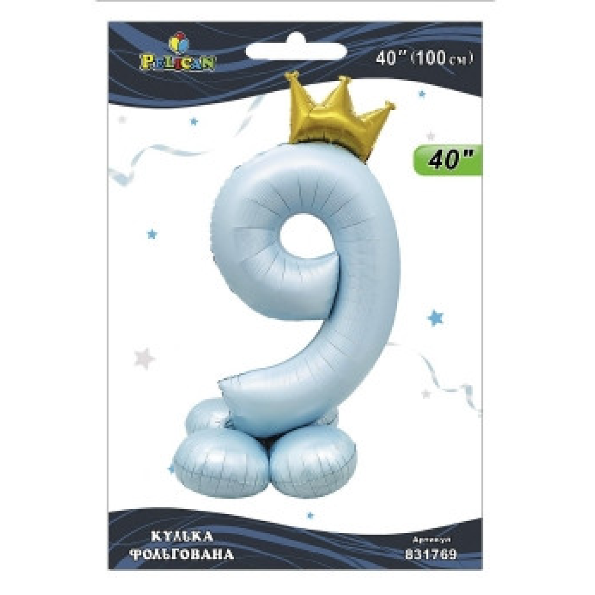 Кулька фольгована цифра з короною на підставці “9“ блакитна 40“ (100см) Pelican Блакитний Pelican (831769) KNZ
