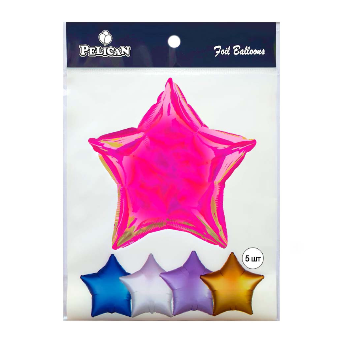 Кулька фольгована Pelican 10“ ЗІРКА ГОЛОГРАМА РОЖОВА 25 см, 5шт/уп Рожевий Pelican (832766) KNZ