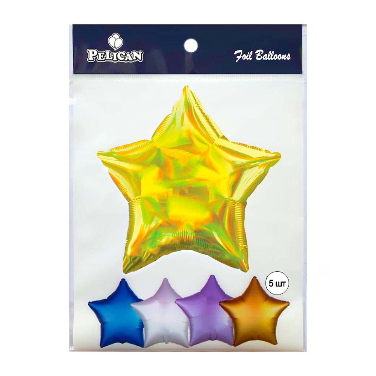 Кулька фольгована Pelican 10“ ЗІРКА ГОЛОГРАМА ЗОЛОТО 25 см, 5шт/уп Золотий Pelican (832761) KNZ