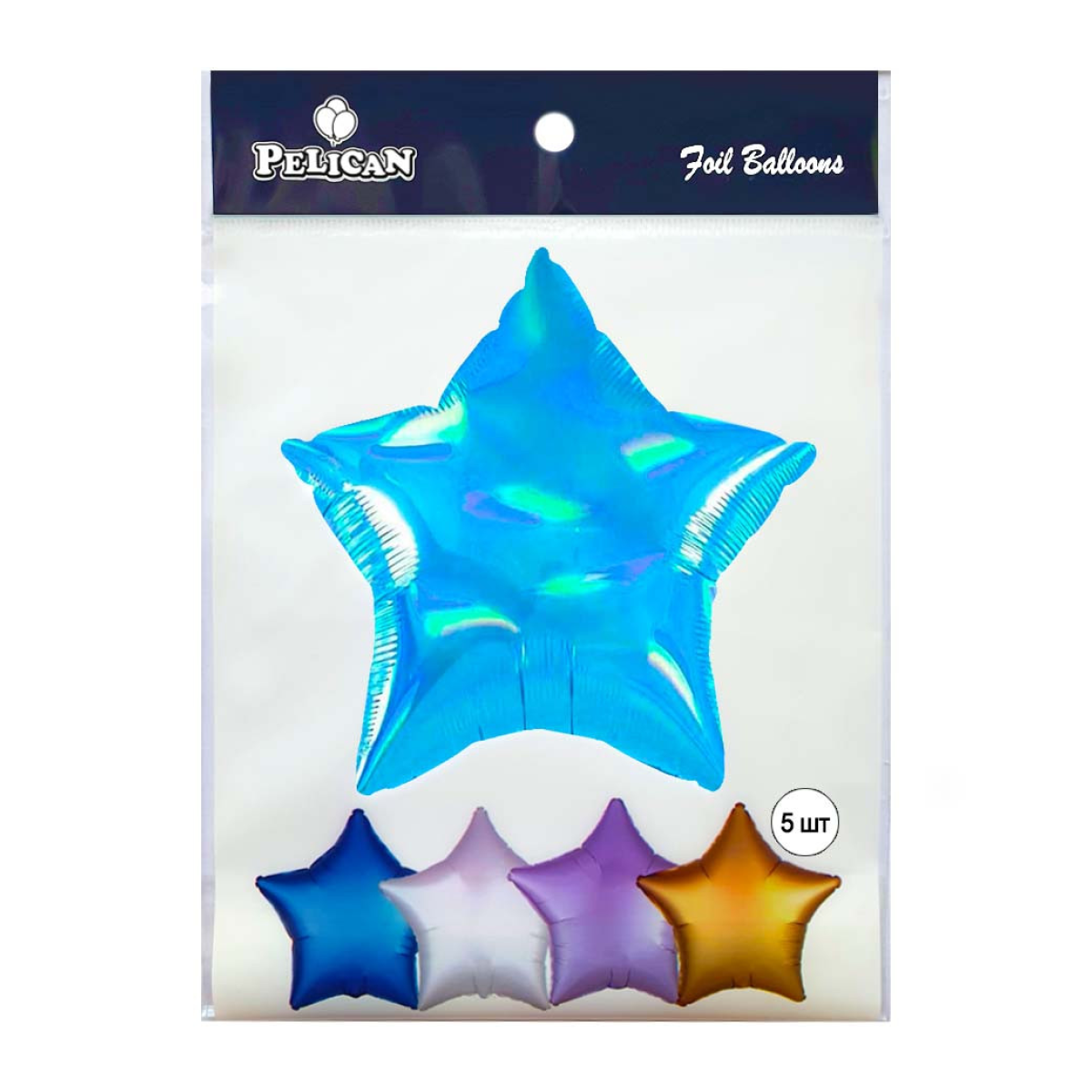 Кулька фольгована Pelican 10“ ЗІРКА ГОЛОГРАМА БЛАКИТНИЙ 25 см, 5шт/уп Блакитний Pelican (832764) KNZ
