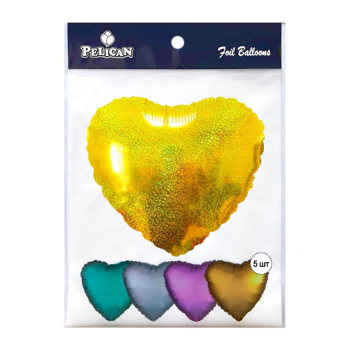 Кулька фольгована PELICAN 18“ СЕРЦЕ ГОЛОГРАМА БЛИСК ЗОЛОТО 45см, 5шт/уп Золотий Pelican (833651) KNZ