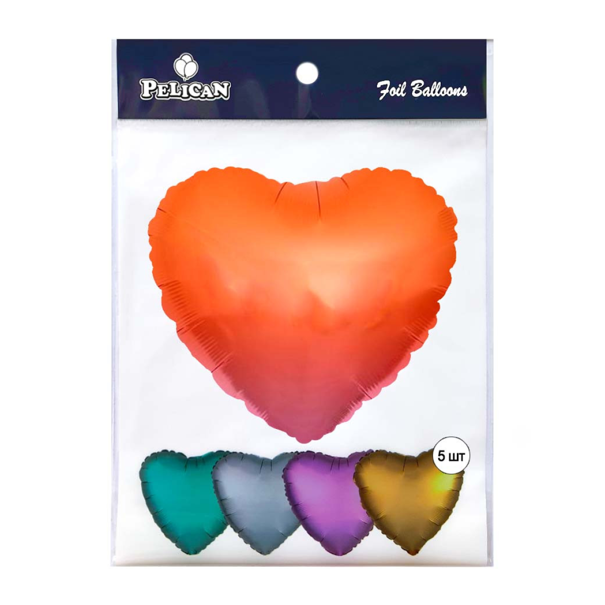 Кулька фольгована Pelican 18 “СЕРЦЕ ОМБРЕ Оранжево-рожеве 45 см, (5шт) Помаранчевий Pelican (833676) KNZ