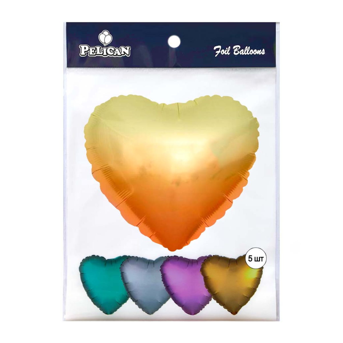Кулька фольгована Pelican 18 “СЕРЦЕ ОМБРЕ ЯНТАРНО-ЗОЛОТО 45 см, (5шт) Помаранчевий Pelican (833677) KNZ