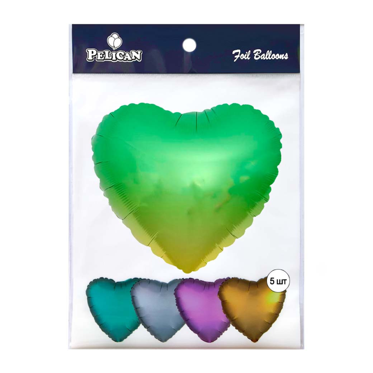 Кулька фольгована Pelican 18 “СЕРЦЕ ОМБРЕ ЗЕЛЕНО-ЗОЛОТО 45 см, (5шт) Зелений Pelican (833680) KNZ