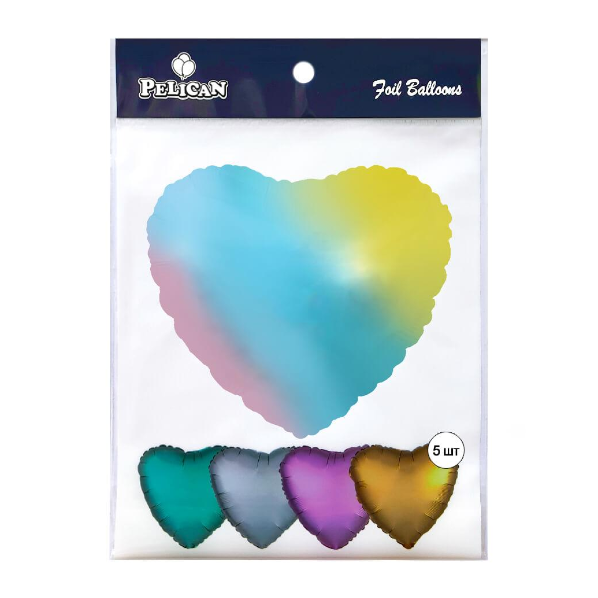 Кулька фольгована PELICAN серце 18“ (45см), Градієнт ніжна веселка, 5шт/уп Різнокольоровий Pelican (833696) KNZ