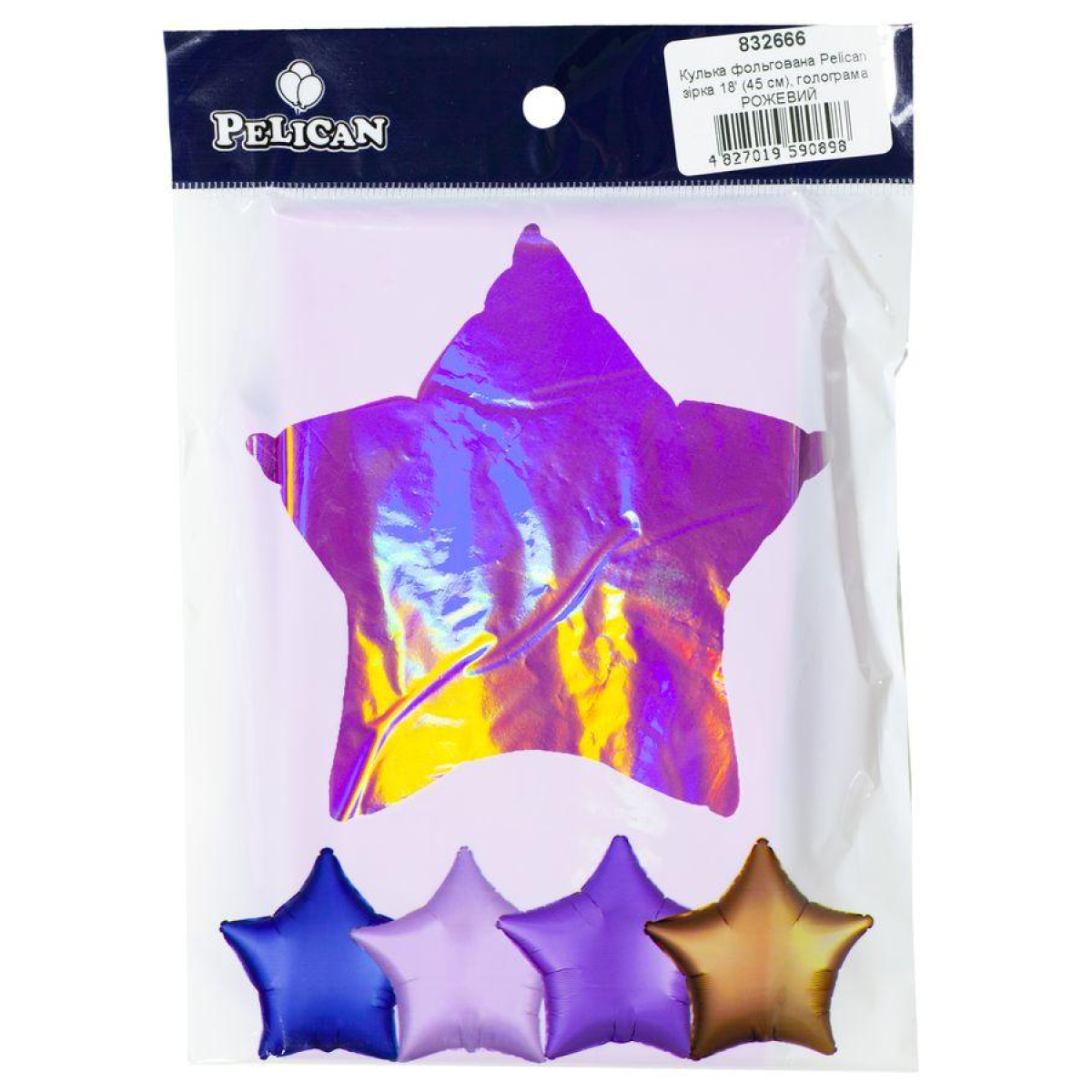 Кулька фольгована PELICAN зірка 18“ (45см) голограма Рожевий (5шт/уп) Рожевий Pelican (832666) KNZ