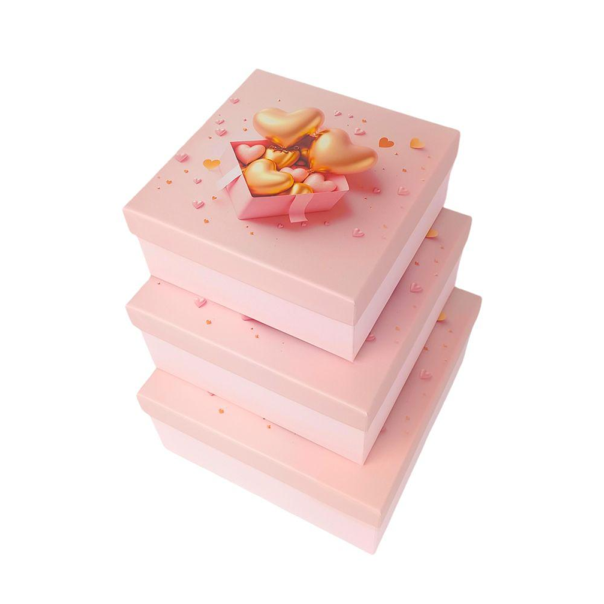 Набір коробок 3 штуки “Серця“ 19х19х9/17х17х8/15х15х6см Unison 2034Y-203-1 KNZ