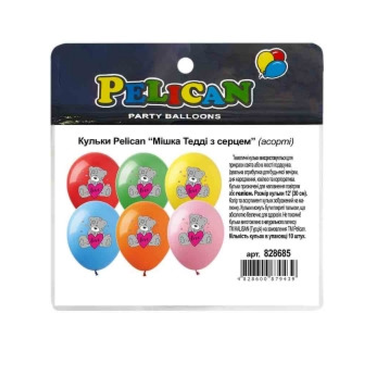 Кульки латексні 12“ (30сm) “Мишка Теди із сердцем“ асорті 10шт Pelican 828685 KNZ