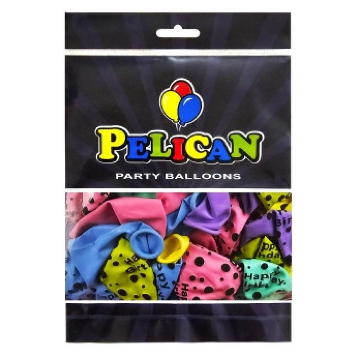 Кульки латексні Pelican 12“ (30см) “Happy Birthday, горошок“ 50 шт Pelican 824028 KNZ