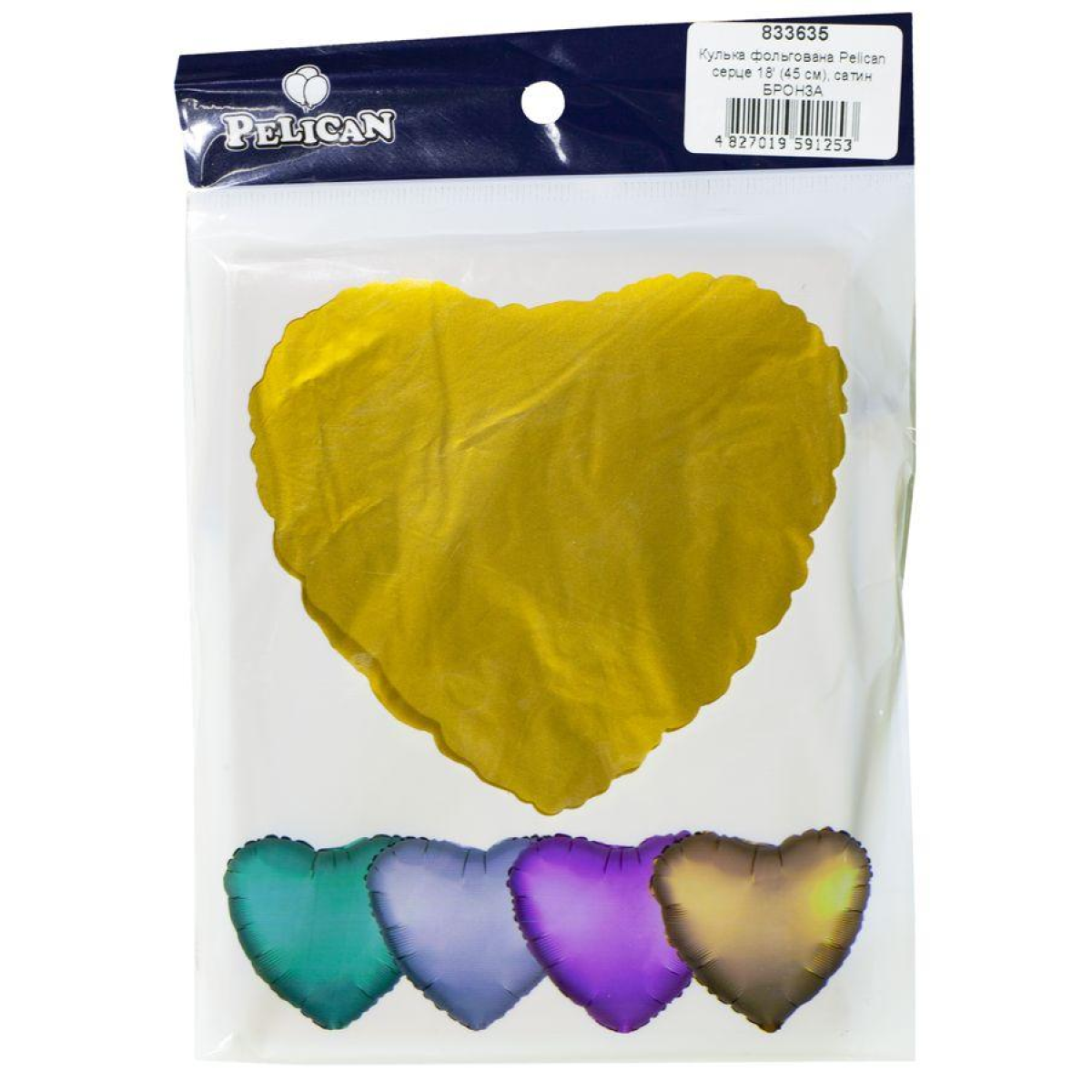 Куля фольгована ПЕЛІКАН серце 18“ (45см) сатин бронза (5шт) Жовтий Пелікан 833635 KNZ
