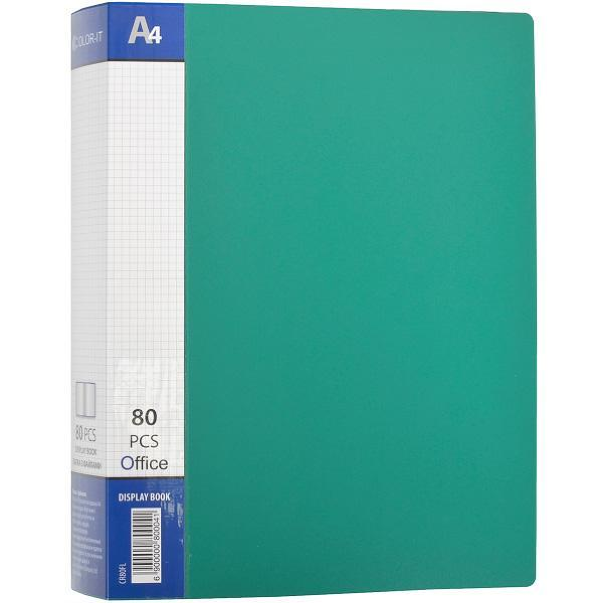 Папка пластикова А4 з 80 файлами, дисплей-книжка на 80 файлів для паперів “С“ Зелена KNZ