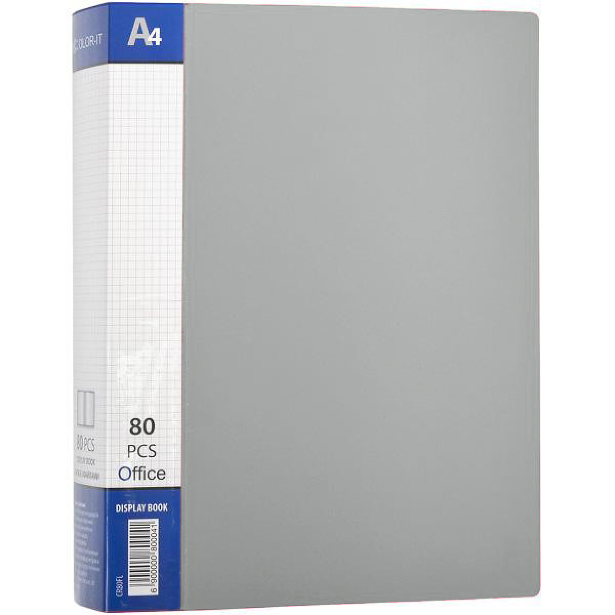 Папка пластикова А4 з 80 файлами, дисплей-книжка на 80 файлів для паперів “С“ Сіра KNZ