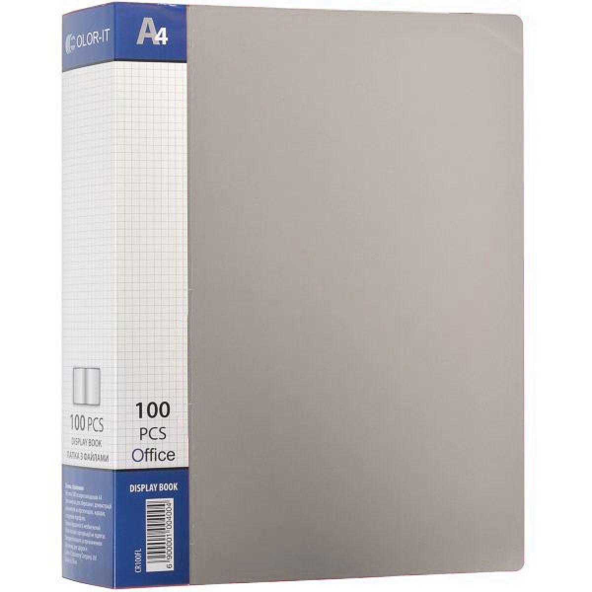 Папка пластикова А4 з 100 файлами, дисплей-книжка на 100 файлів для паперів “С“ Сіра KNZ