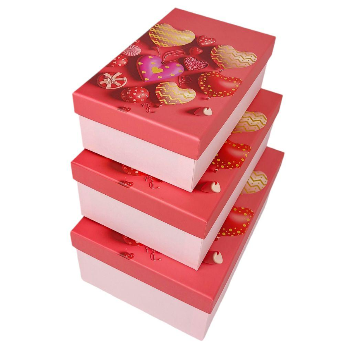 Набір коробок прямокутних 3 шт “Серце“ 23 х 16 х 9,5 см Рожевий Unison 1037Y-203-1 KNZ