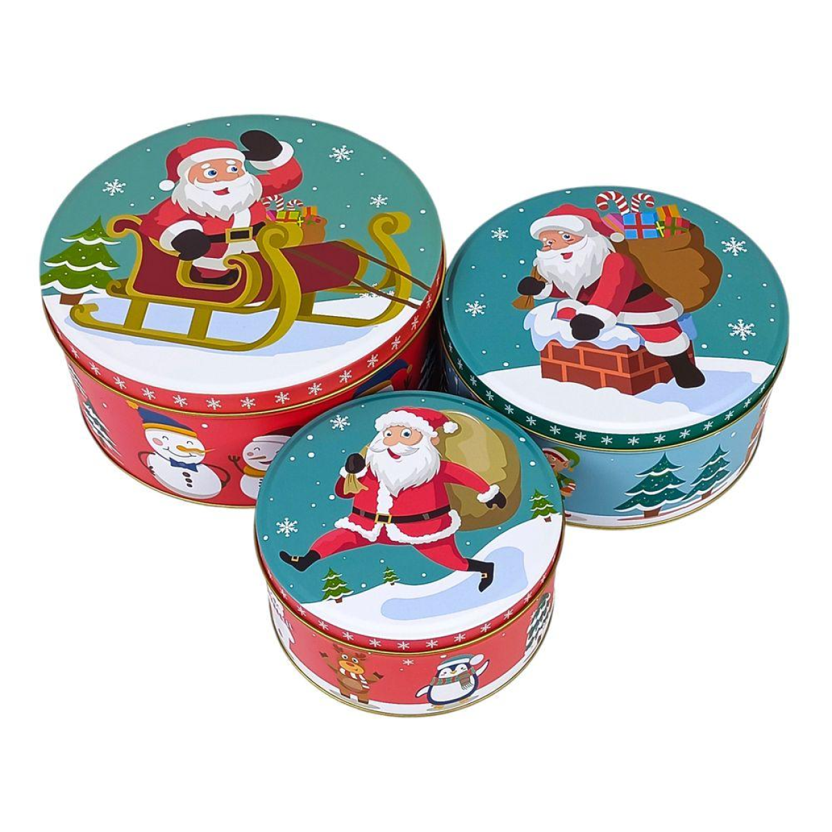 Подарункова металева новорічна коробка для насолод “Санта Клаус“, 3шт - в наборі 03369-101 KNZ