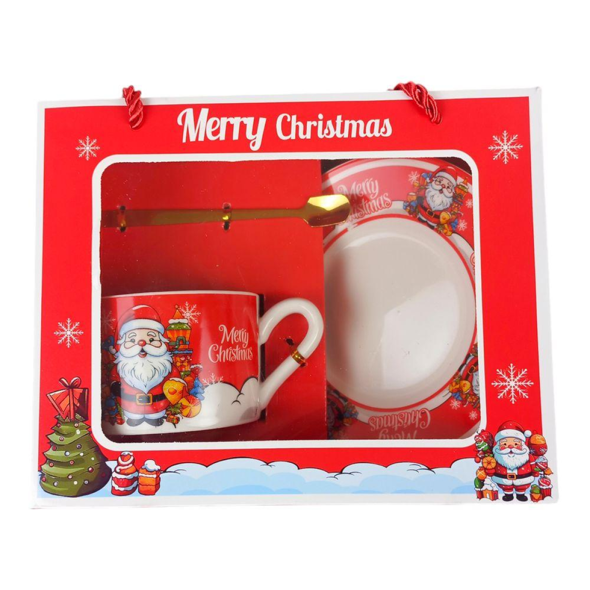 Чашка керамічна із блюдцем 250мл “Санта Клаус з ялинкою“ в подарунковому пакеті HM-306-B-1 KNZ