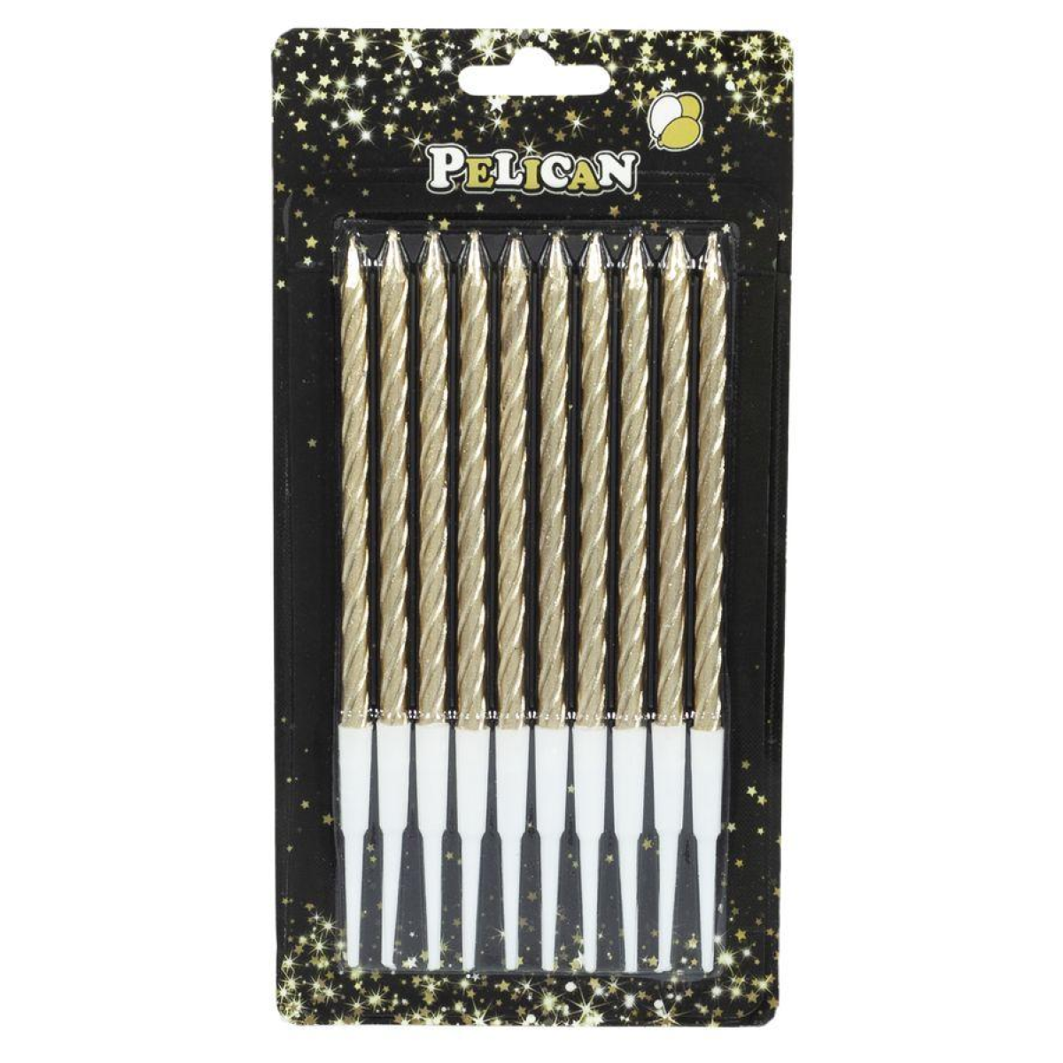Набір свічок для торта “СПІРАЛЬНІ 14 см“, жовте золото 10шт / уп Золотий Pelican 868121 KNZ