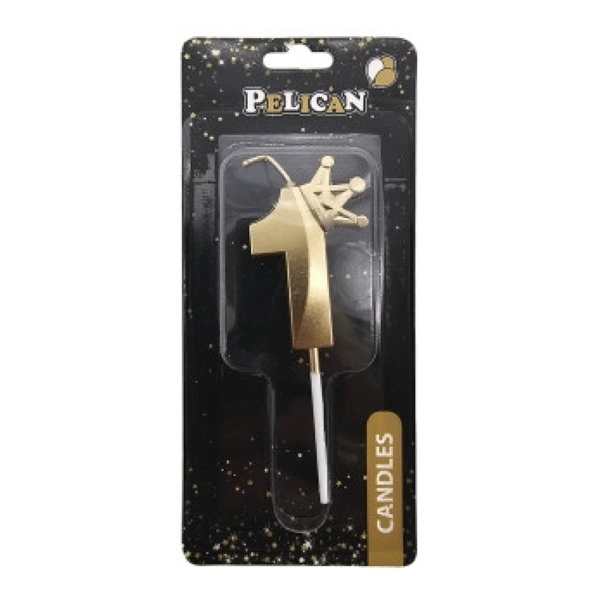 Свічка-цифра 3D з короною “1“ золото 6см 863101 KNZ