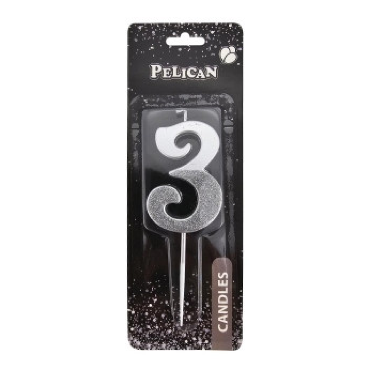 Свічка-цифра з блискітками “3“ срібло 5см 863313 KNZ