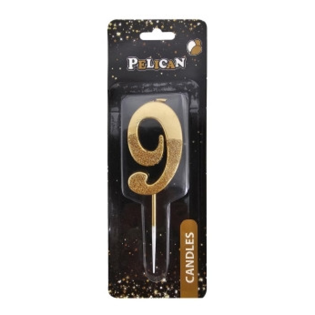 Свічка-цифра з блискітками “9“ золото 5см 863309 KNZ